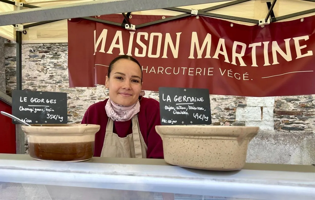 Après une première vie professionnelle dans le marketing digital, Aline Page a créé une charcuterie végétarienne. Les terrines, les saucisses et les tomates farcies de Maison Martine sont sur les marchés Ney, Bichon et Bordillon, à Angers.