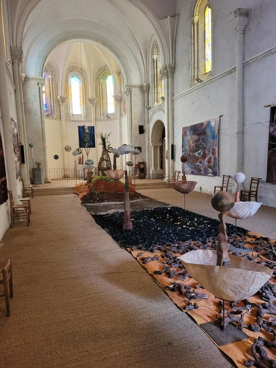 Dans chacune des chapelles, un plasticien propose une œuvre adaptée au site. À Chalonnes-sur-Loire, Claire Alary, artiste de Savennières, propose un cheminement à partir de matériaux naturels © . Art et chapelles