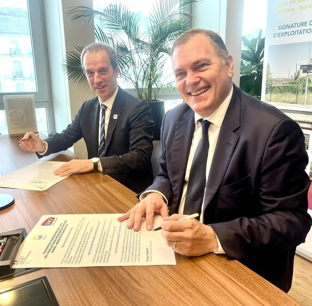 Ce vendredi 18 juillet, dans la matinée, le ministre des transports Philippe Tabarot s’est rendu à la gare de Nantes pour signer la convention d’exploitation avec le PDG de SNCF Voyageurs, Christophe Fanichet.