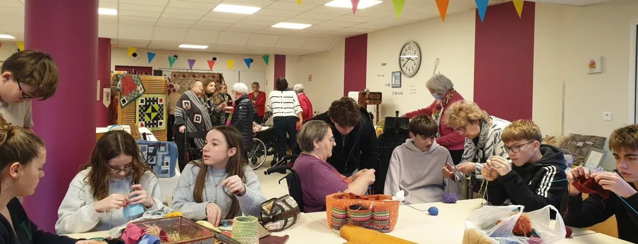 L’exposition « Nos habitants ont du talent », préparée conjointement par le groupe local d’échanges de savoirs Travaux d’aiguille et Vill’âge l’Épinette, a ouvert ses portes ce jeudi. Chaque après-midi, de 15 heures à 18 heures, les nombreux ouvrages de patchwork, broderie, dentelle et tricot sont exposés, et il est possible d’être initié à quelques techniques. La première journée a été l’occasion d’un échange joyeux avec une dizaine de jeunes du foyer, qui ont découvert le tricot et l’appliqué, en profitant des conseils avisés de tricoteuses et couturières expérimentées, sous les yeux des résidents ravis de cette ambiance. Il est encore possible de découvrir ce travail aujourd’hui.