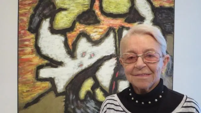 Janine Vigas, épouse du peintre vénézuélien, a découvert l'exposition avec émotion vendredi 30 janvier. © OF