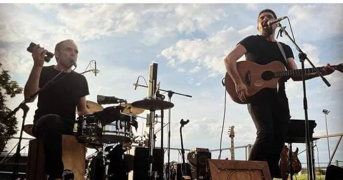 Les Franglais : Pascal aux percussions et Pierre à la guitare. © Les Franglais