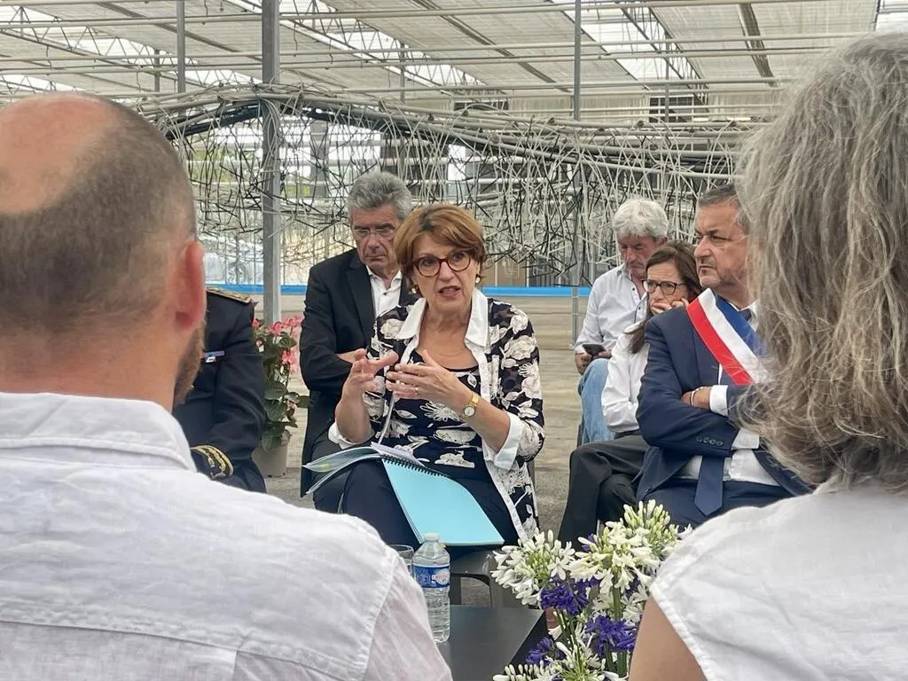 Mazé-Milon, le 13 juin 2025. Annie Genevard, ministre de l’Agriculture, a défendu le stockage de l’eau et la réintroduction de l’acétamipride auprès des acteurs de la filière horticole. © CO