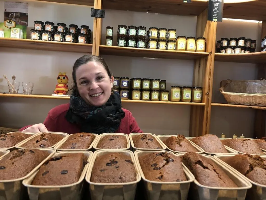 Mazé-Milon, le 6 décembre 2024. Camille Gentet des Abeilles de Loire devant des pains d’épices à peine sortis du four. © CO – Christophe RICCI