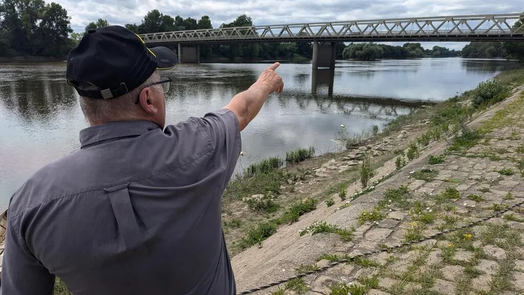 Jean-Michel Galay, montrant le pont, à Chalonnes, sous lequel sa vie, celle de son frère et de son petit-fils, ont failli basculer. © Ouest-France