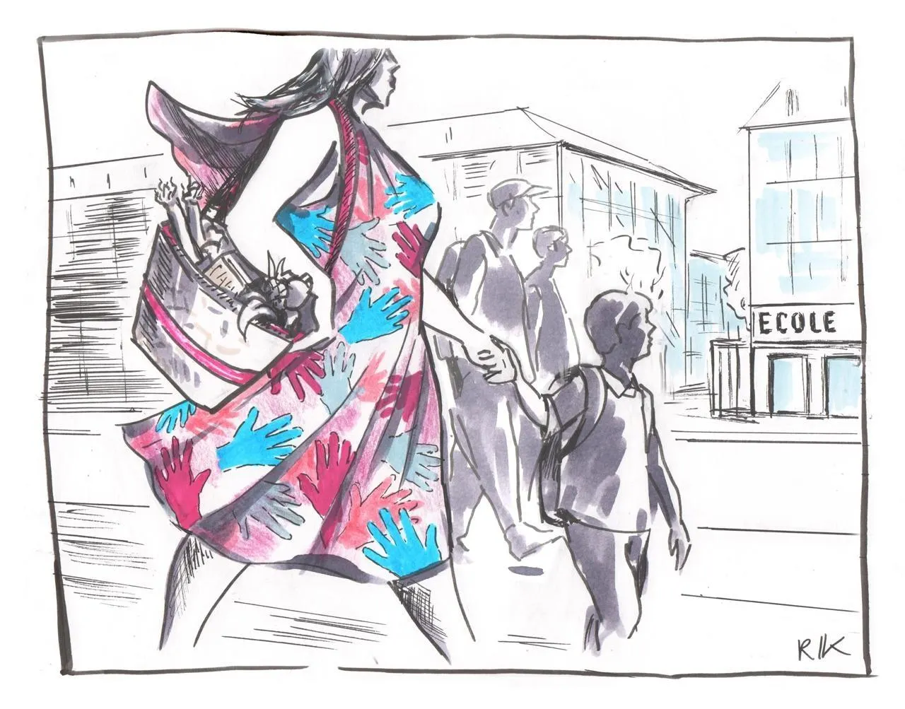 Après une séparation et la perte de son emploi pendant le Covid, une mère de famille dit avoir été contrainte de se prostituer pour subvenir aux besoins de sa famille. © Dessin – Amandine Rik