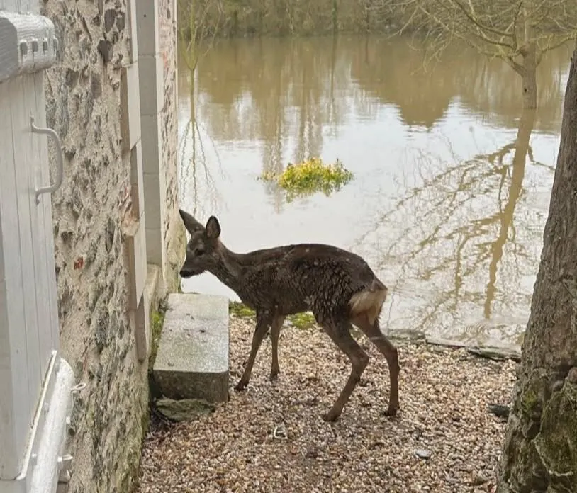 . Installés depuis 22 ans sur l’île de Rochefort-sur-Loire, entre la Loire et le Louet, Brigitte et François Hamet n’avaient encore jamais connu pareille crue. Celle-ci est telle que depuis quelques jours, des animaux s’approchent au plus près de leur habitation.
