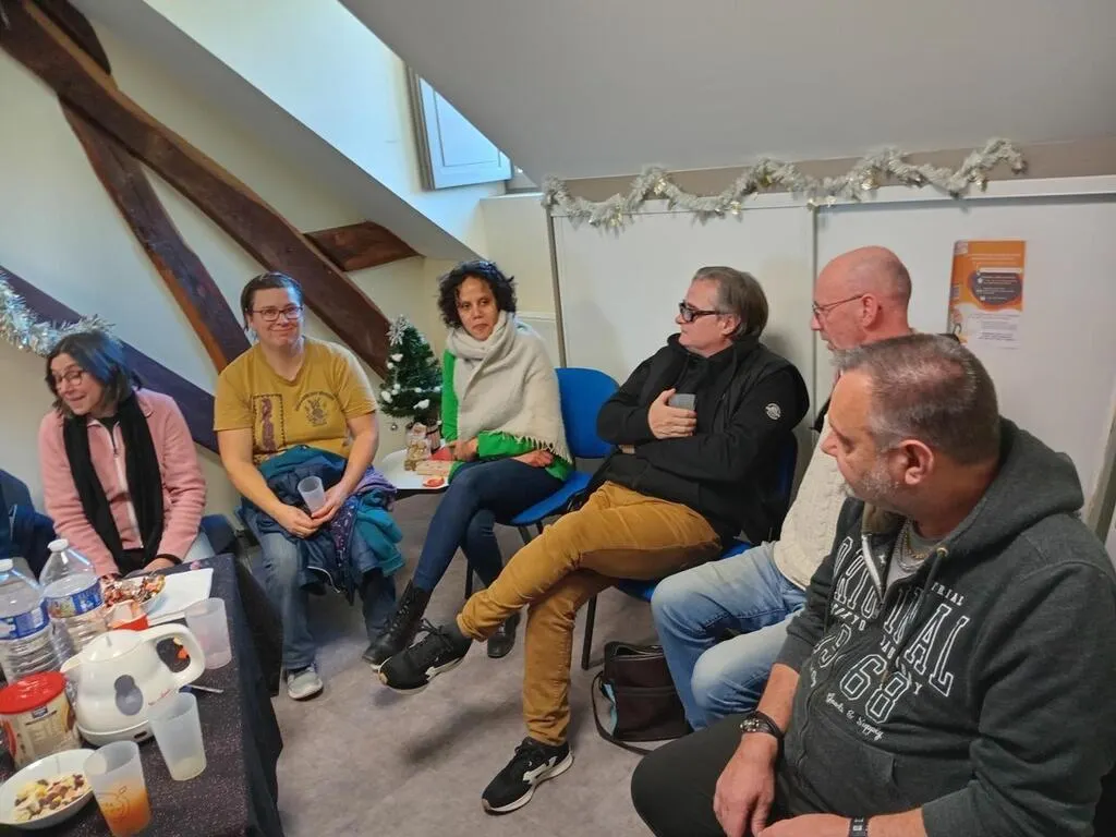 Mazé-Milon, le 12 décembre 2024. Pendant plus d’une heure, Brigitte et Serge Crézé, Fabienne Koné, Vanessa Peltier et Bruno Marcq ont partagé avec enthousiasme leurs expériences avec Etape, respectivement comme clients, directrice, chargée de mission et salarié. © CO - Christophe RICCI