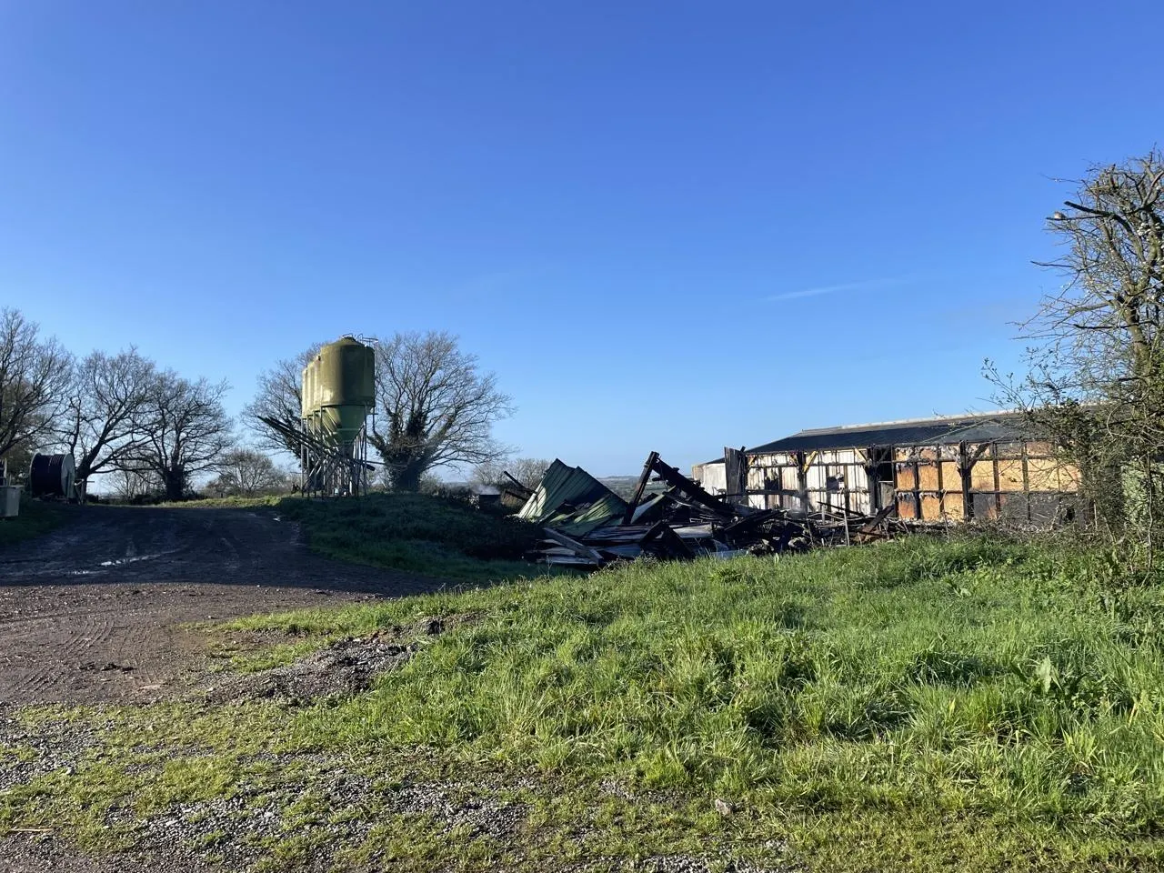L’odeur de brûlé est encore bien présente au petit matin, ce samedi 14 mars 2026, aux abords de l’exploitation agricole Gaec de la Colline, à Segré, commune déléguée de Segré-en-Anjou-Bleu (Maine-et-Loire), sur la route ...