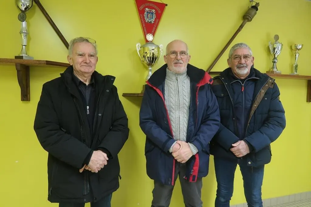 Mazé, le 14 janvier 2025. Jean-Paul Aubry, Dominique Delalande et Michel Chapelle cumulent à eux trois presque 80 ans chez les sapeurs-pompiers de Mazé. © Agathe LE NUEFF