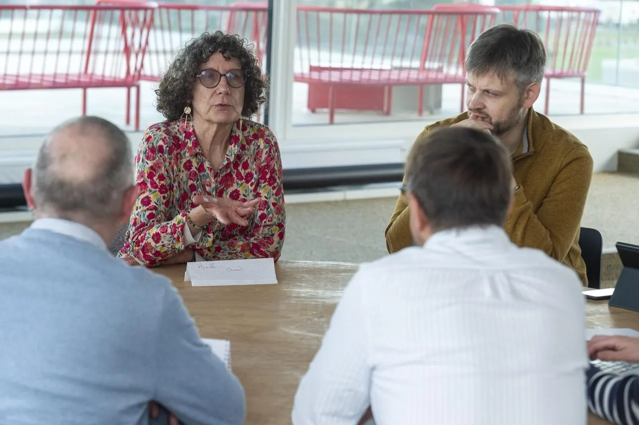 Table ronde dans les locaux d’Ouest France à Rennes entre des conseillers municipaux du Grand Ouest. Ici, Armelle Durand, Laurent Enguehard, Anthony Guidault, Laurent Maissin, Dominique Langanné, Éric Nozay. © Mathieu Pattier / Ouest France