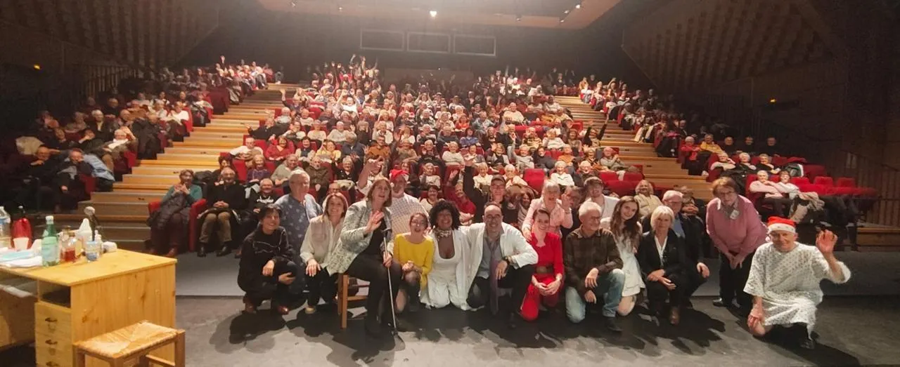 Les acteurs de la Cie du Pont d’Ardoise s’associent au public lors du salut final. © Cie Pont d’Ardoise
