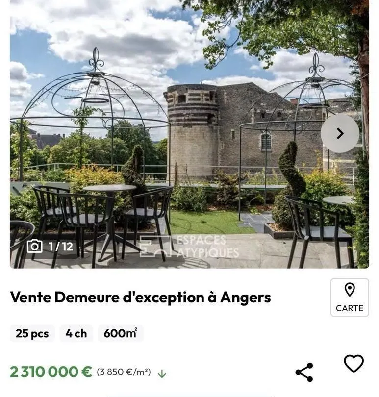 Le prix de cet immobilier de prestige situé dans le centre-ville d’Angers, face au château, est en baisse. © Capture d’écran ouest-france immo