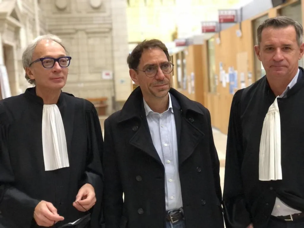Me Thierry Fillion, avocat à droite de Christophe Reineri, ex-directeur de Kéolis et Me Nicolas De la Taste, avocat de l’ex-épouse de Christophe Reineri en décembre 2021 à Angers. © Archives OF