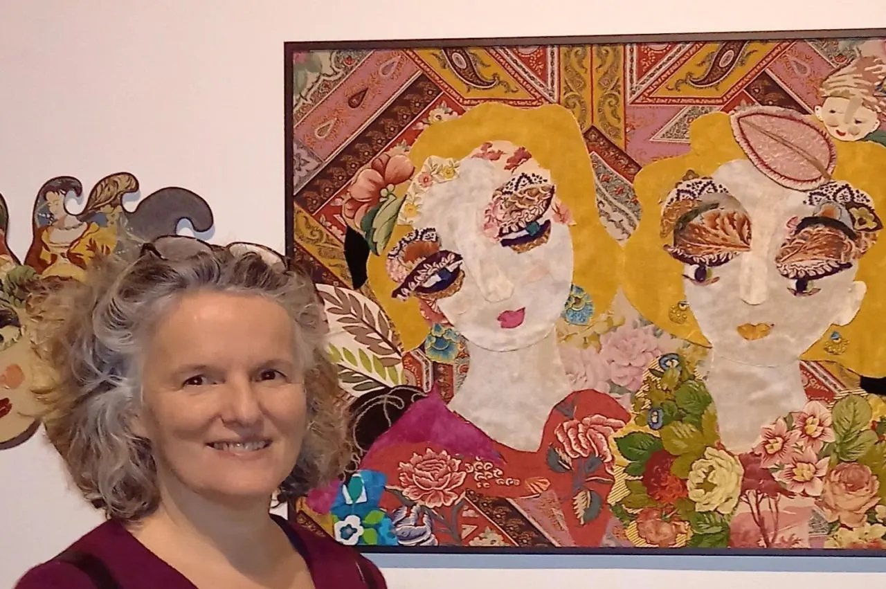 Katherine Roumanoff devant l’une de ses Å“uvres intitulée « Les deux sÅ“urs ». © Ouest-France