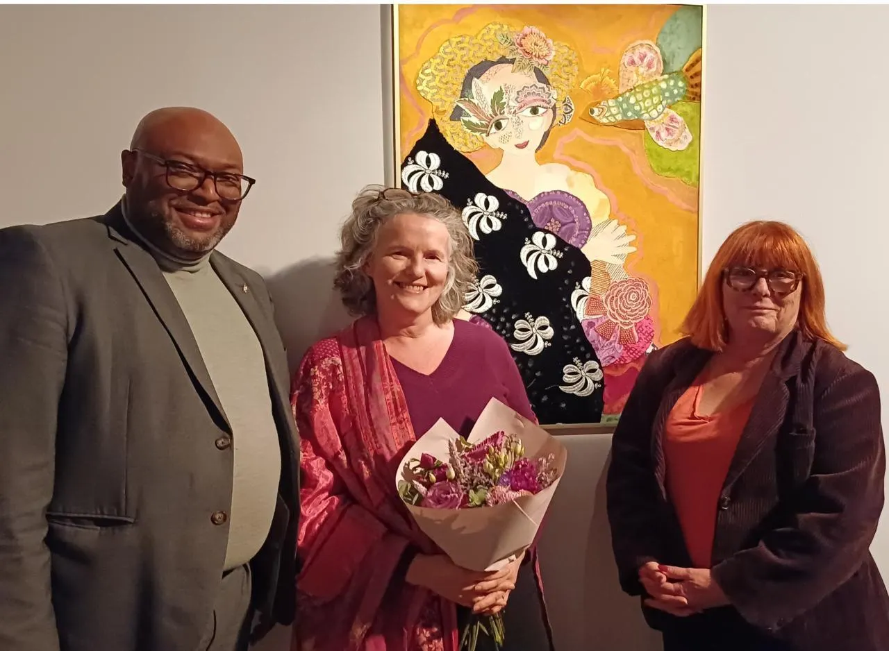 Jeudi 12 février. L’inauguration de l’exposition de Katherine Roumanoff a eu lieu en présence de Lamine Naham, maire de Trélazé et de Chantal Geoffroy, adjointe à la culture. © CO