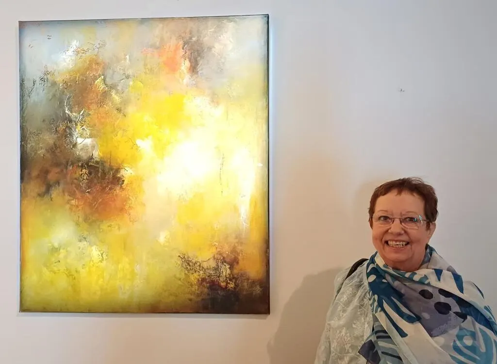 Françoise Vandiedonck devant son tableau « Ardente présence ». © CO