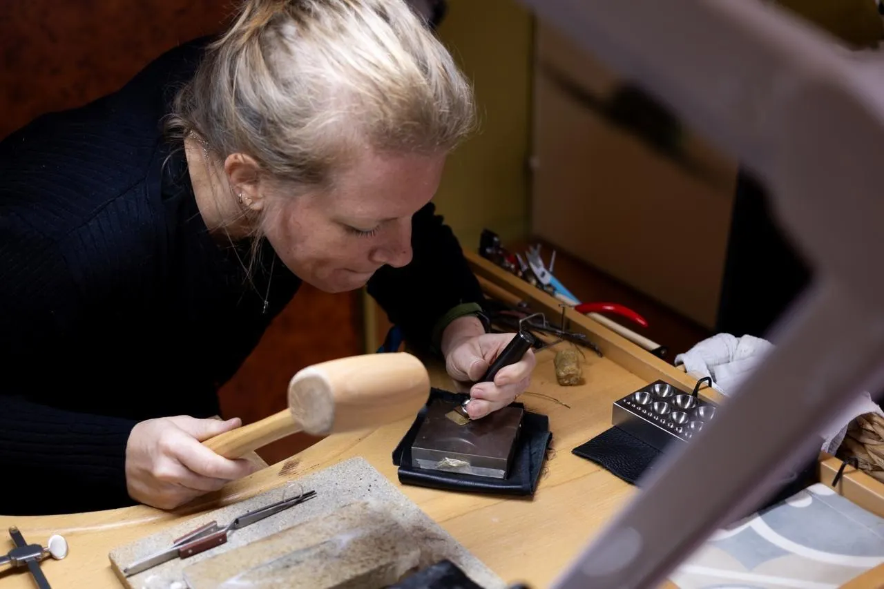 Dans son atelier, Charlotte Guiliani imagine et façonne des bijoux en matériaux précieux, principalement en argent. © Charlotte Guiliani