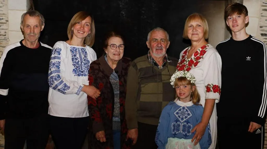 Marcel et Marie-Céline, encadrés par cette famille ukrainienne. Ils leur ont ouvert leur porte et leurs cÅ“urs. © DR