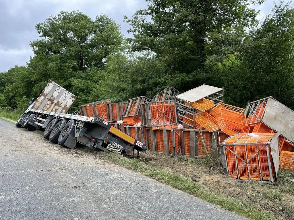 Ce lundi matin 12 mai 2025, un poids lourd transportant des lapins s’est couché dans le fossé de la route départementale 762, qui relie Villedieu-la-Blouère et Montfaucon-Montigné, entre les Chêne-aux-loups et Le Grand-Renard (Maine-et-Loire).