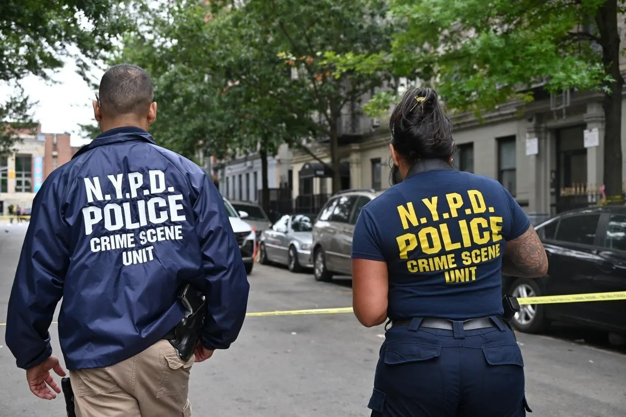 Deux officiers de la police criminelle de New York (États-Unis), le 18 août 2025 dans le quartier de Manhattan. Photo d’illustration. © KYLE MAZZA / NurPhoto via AFP