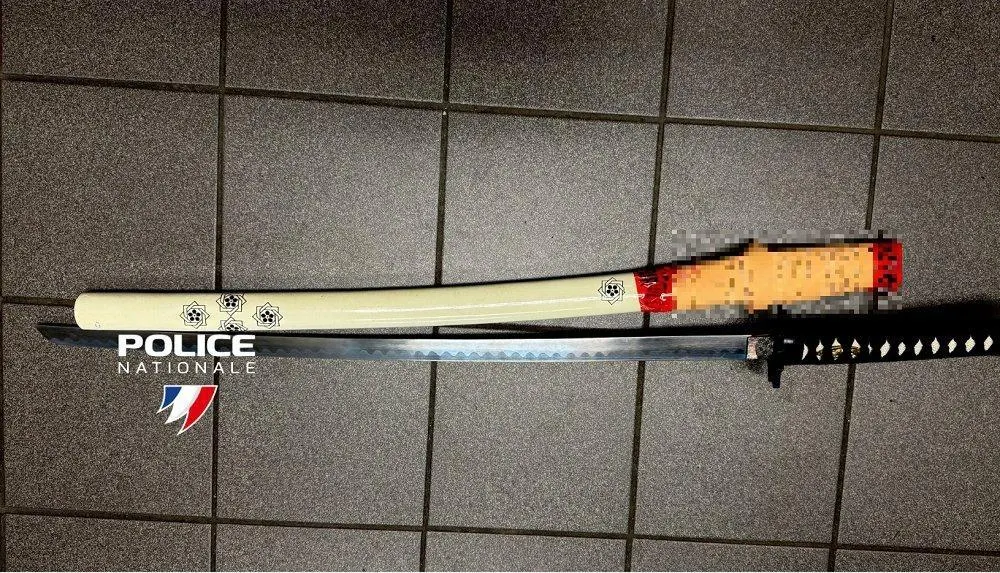 Le katana, une arme japonaise, a été saisi par les policiers, lundi soir dans un foyer d’hébergement pour sans-abri à Nantes © Police nationale 44