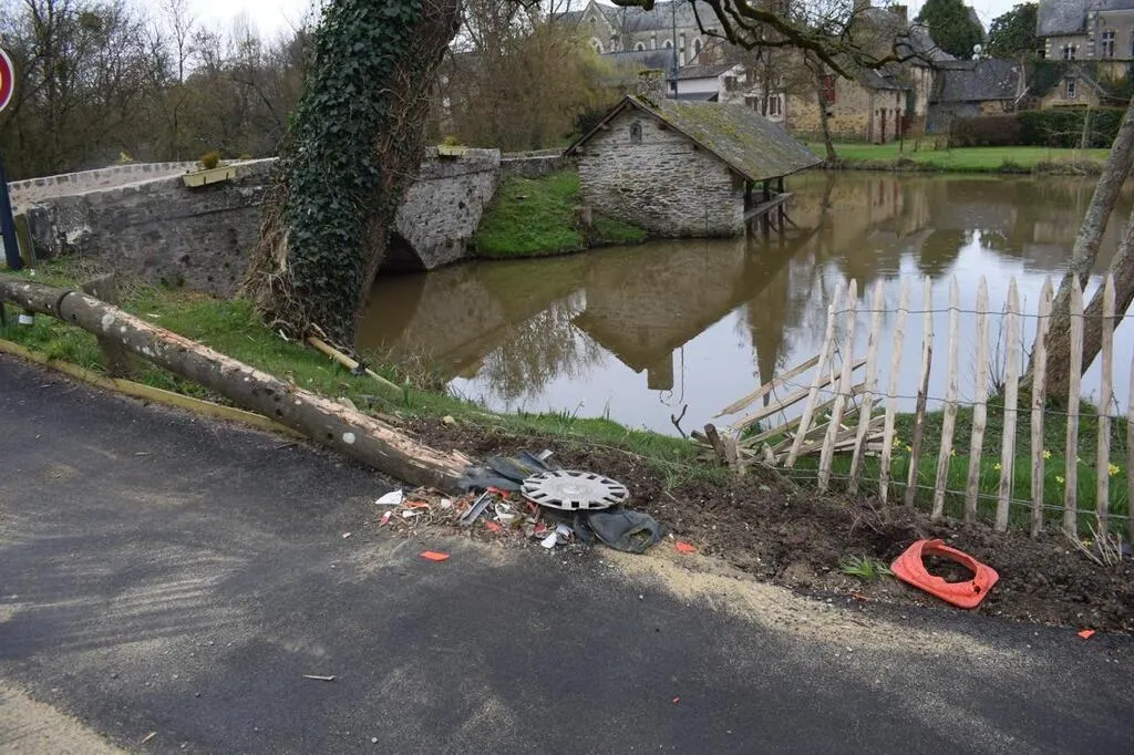 Un morceau de bordure en bois qui se trouvait là aurait fait décoller la voiture qui s’est ensuite retrouvée dans l’eau.