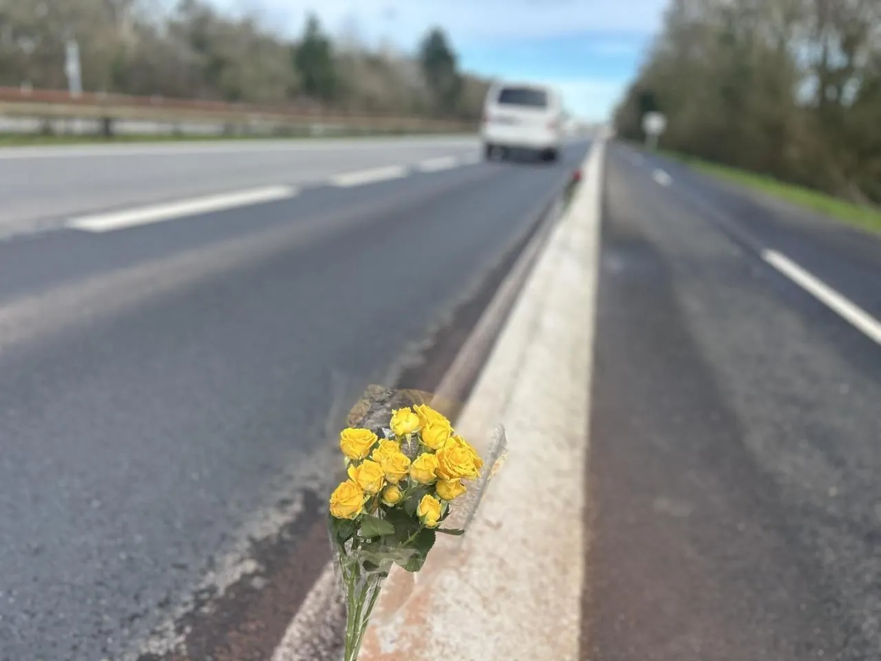 Ce dimanche 8 février, des amis des deux victimes ont déposé des fleurs près du lieu de l’accident, sur la route de Pornic. © Ouest-France