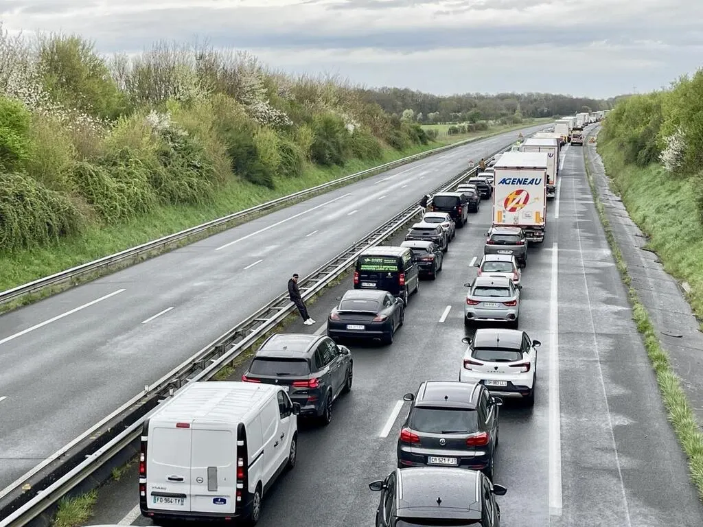 Chemillé-en-Anjou, le 3 avril 2025. Des centaines d’automobilistes sont à l’arrêt sur l’autoroute après un accident mortel survenu près de Cholet. © CO - Lucas ROJOUAN