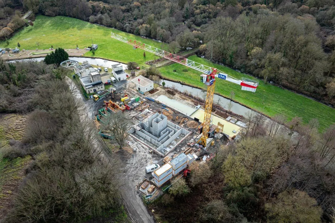 Les travaux de construction de l’usine d’eau potable se poursuivent à Pontigné, c’est l’investissement le plus important de cette année. © ©Pixim Communication – Christophe Gagneux