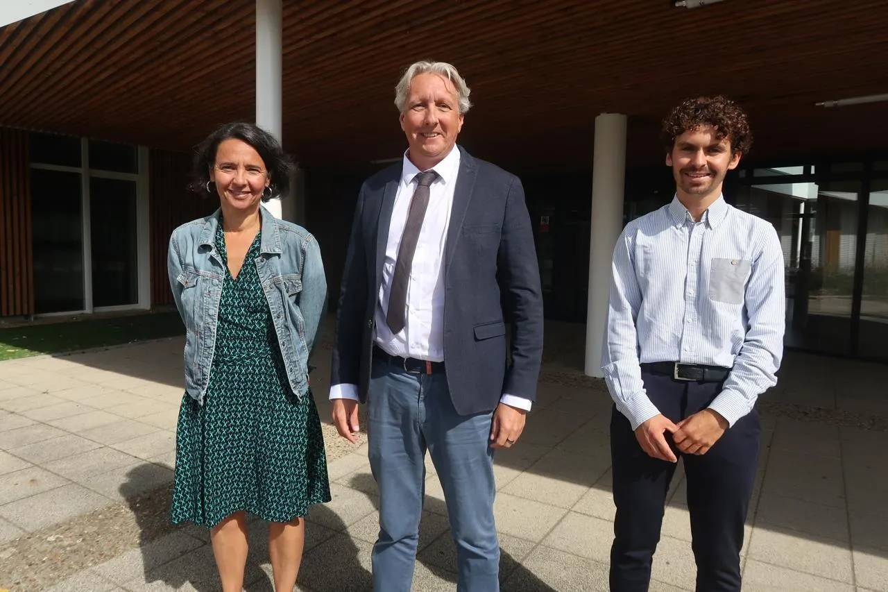 Beaufort, le 27 août 2025. Erwan Mahé, le nouveau principal du collège Molière, entouré de son adjointe Annabelle Renoux et du secrétaire général Yann Pouliquen. © CO – Agathe LE NUEFF