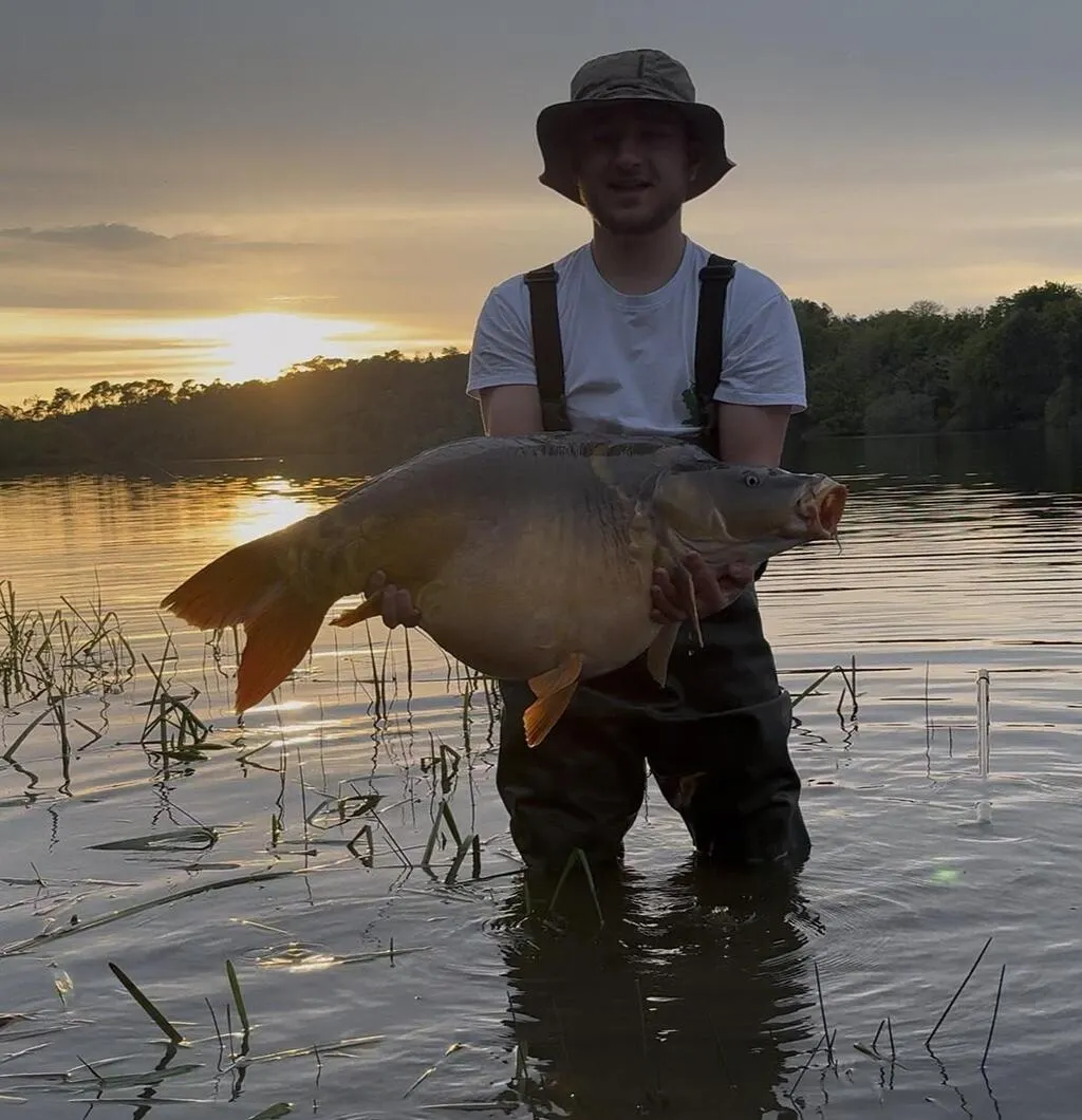 Originaire du Maine-et-Loire, Evann Veron, 20 ans, a pêché une énorme carpe miroir dans le lac de Jaunay en Vendée.