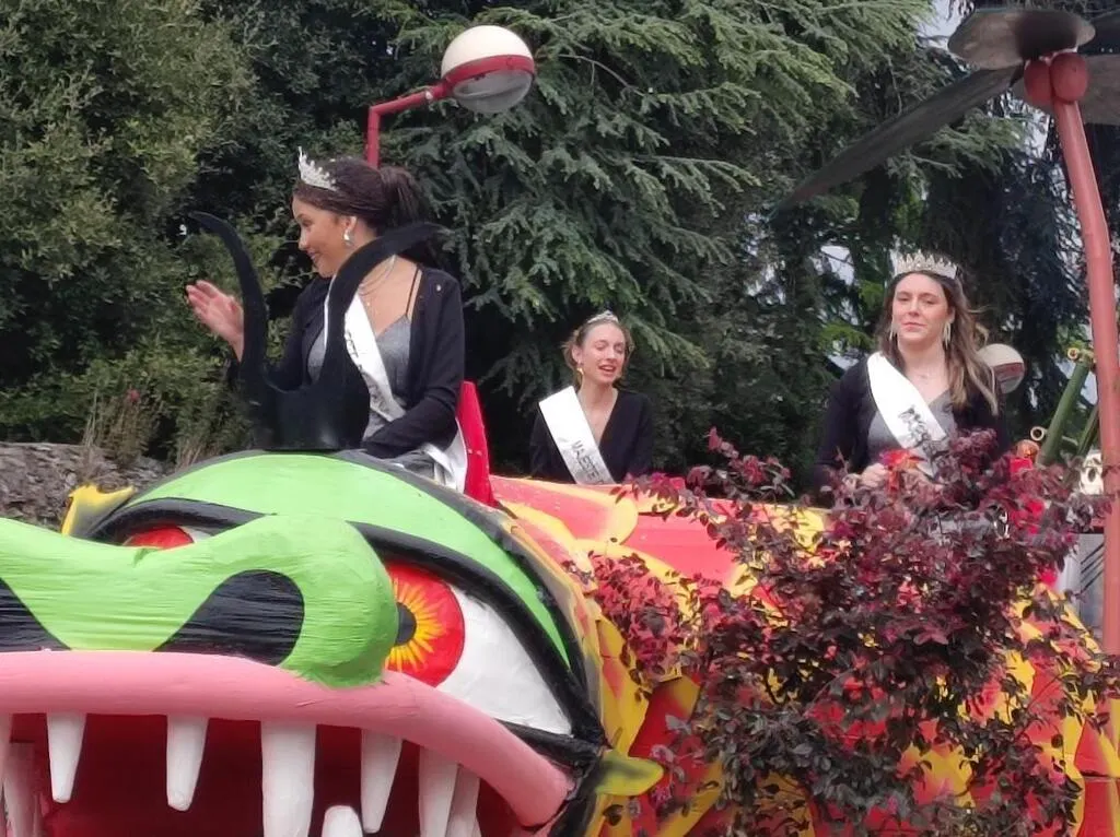 Les Majestés Tennessy Élisabeth, Lisa Bouildé et Rose Vagner sur leur char Dragon ont salué le nombreux public présent au 78e carnaval. Ouest-France