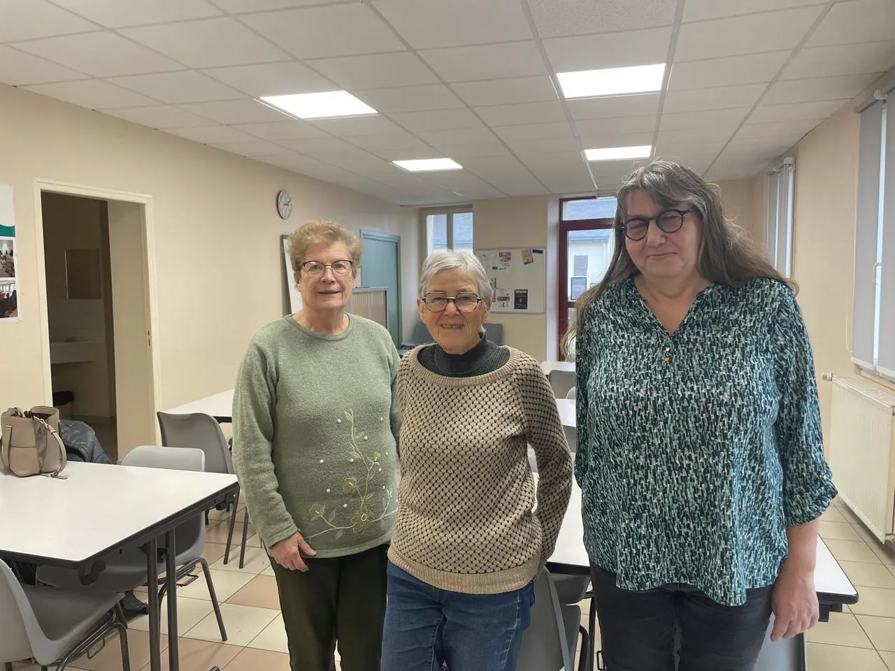 Marie-Annick Hillaire, Sylviane Bossé, co-présidentes de l’association 1000 et une mains douessines, aux côtés de Marie-Christine Viraize, bénévole. © CO