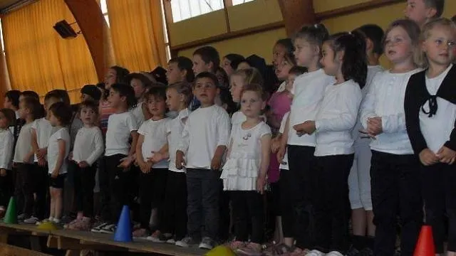 Les élèves de l'école aiment chanter tous ensemble devant leurs parents et grands-parents à la fête de l'école.