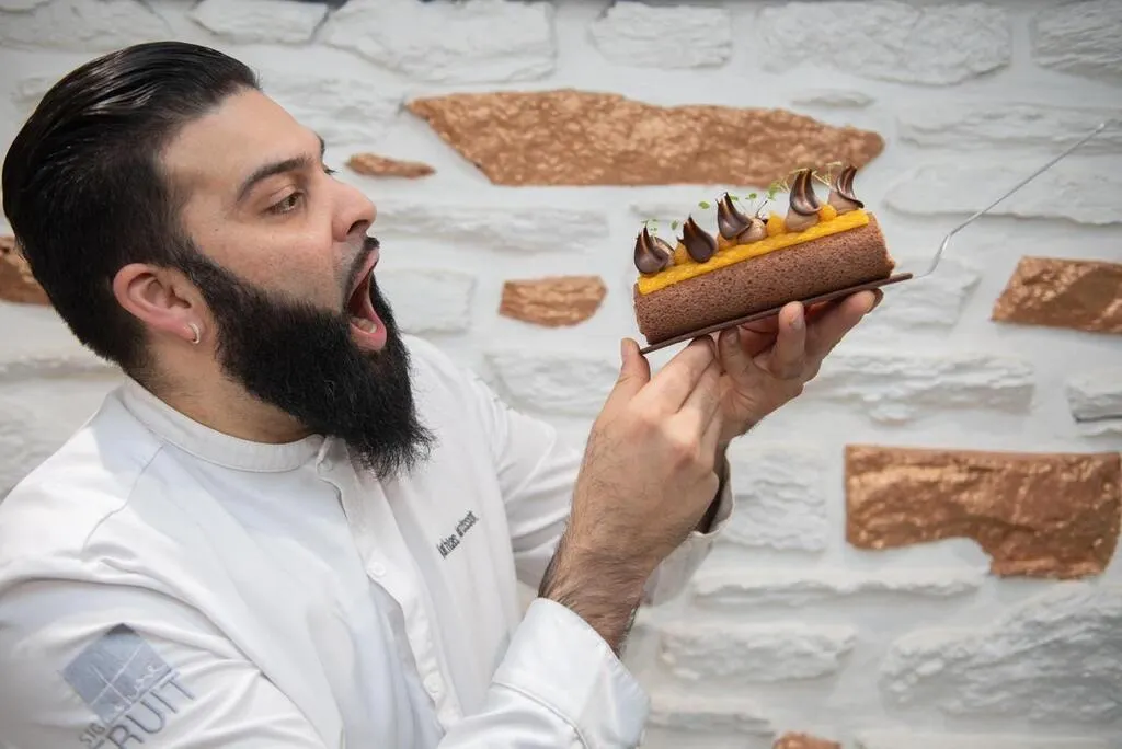 « Je fais de la pâtisserie d’émotion », aime à dire Mathias Narcissot. « Une pâtisserie inspirée de l’instant, faite minute, quotidiennement. Je ne garde pas mes gâteaux plus de deux jours, pour qu’ils restent bien frais et qu’ils gardent le croustillant. » Le chef a affûté son palais lors de ses expériences professionnelles du Club Med à l’hôtellerie de luxe : après un CAP pâtissier passé à Saint-Grégoire et une Mention complémentaire Dessert assiette (pour la restauration), le garçon, grandi dans le quartier Patton, a pris son sac à dos pour voyager.