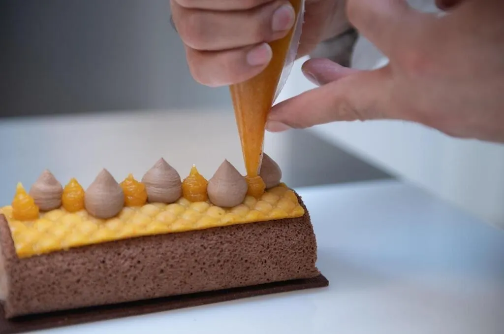 Poser des pointes de ganache avec la poche à douille. DAVID ADEMAS / OUEST-FRANCE