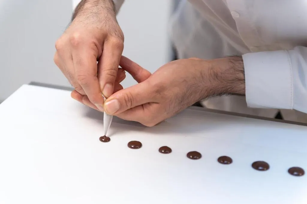 Poser les virgules de chocolat noir. DAVID ADEMAS / OUEST-FRANCE