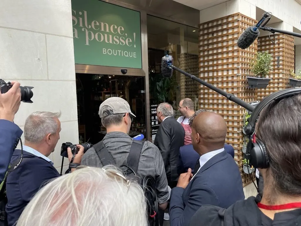 Le Premier ministre François Bayrou entre dans la boutique Silence, ça pousse, ce jeudi 24 juillet, à Angers (Maine-et-Loire). © Ouest-France