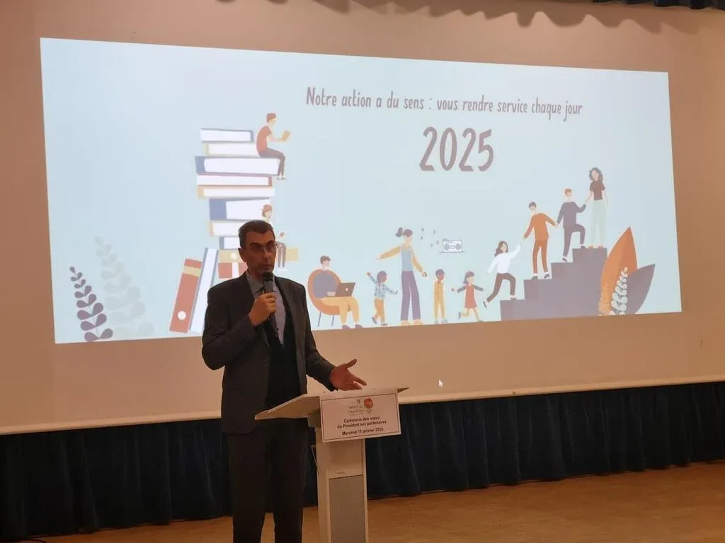 Étienne Glémot, président de la Communauté de communes des Vallées du Haut-Anjou, a présenté ses vÅ“ux, mercredi 15 janvier 2025. © CCVHA