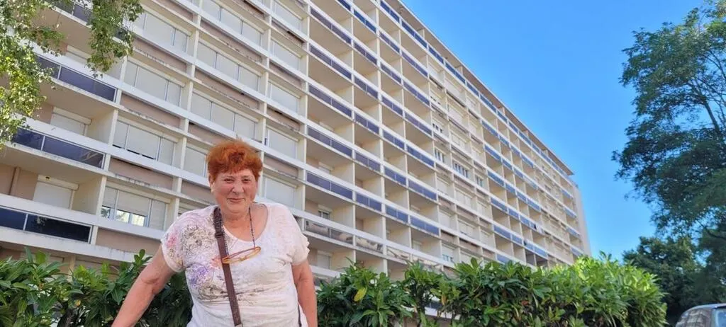 Derrière Daniele Bouché, résidente de l’îlot Savary, tous les volets de l’immeuble sont fermés pour garder un peu de fraîcheur. © Ouest-France