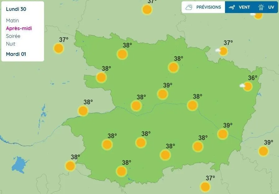 Pas mieux pour les nuits, qui seront également chaudes, avoisinant voire dépassant les 20 °C. Une baisse des températures est prévue à partir de ce mercredi 2 juillet, mais elles resteront supérieures à 30 °. L’accalmie devrait être effective à la fin de la semaine prochaine.