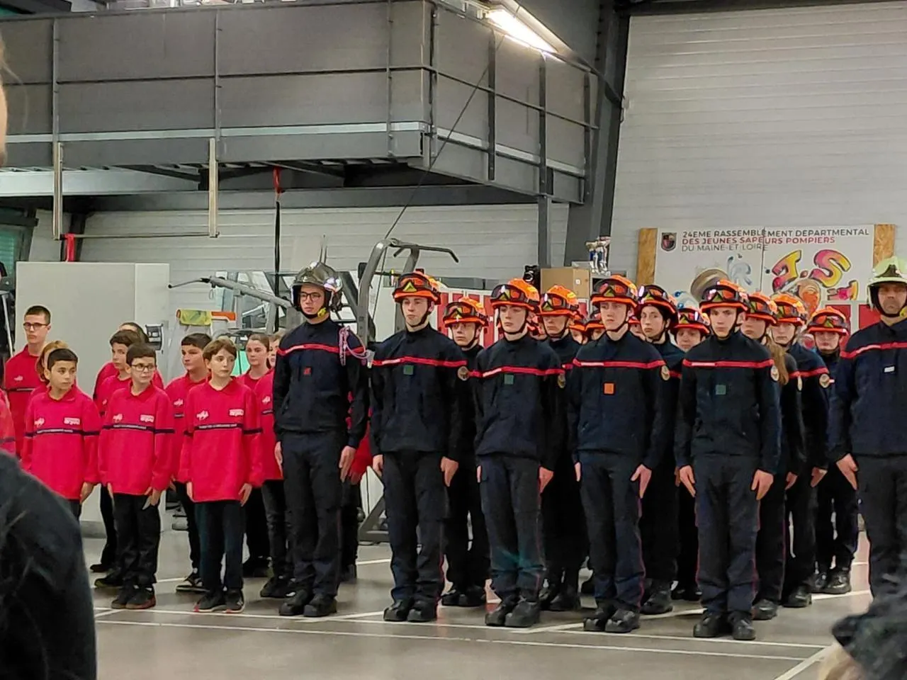 Beaufort-en-Anjou, le 6 décembre 2025. Les cadets de la sécurité civile et les jeunes sapeurs-pompiers du centre de secours Beaufort - Val d’Authion, réunis à l’occasion de la Sainte-Barbe. © Document remis