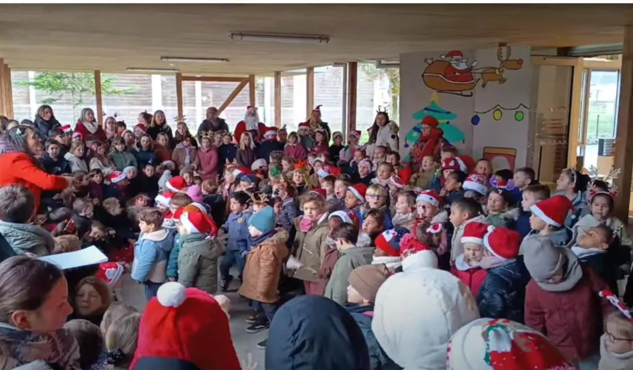 Vendredi 19 décembre, la visite du père Noël a eu lieu à l’école maternelle du Terre, à Verrières-en-Anjou. À cette occasion, la Société des fêtes de Pellouailles a assuré la distribution de bonbons. Les élèves de maternelle ont ensuite interprété des chants de Noël devant les élèves de l’école primaire, venus les écouter. © CO