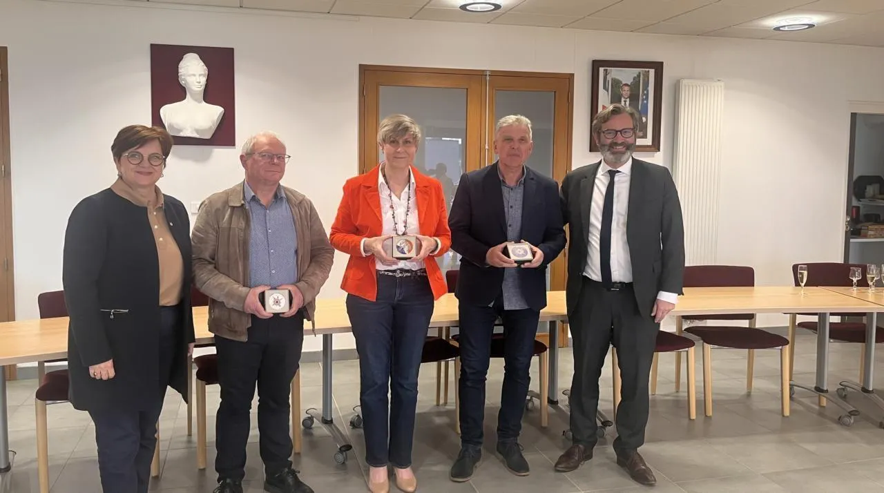 Jeudi 19 mars, à quelques heures de la fin de leur mandat, l’ancienne maire Geneviève Stall et les maires délégués Éric Michaud et Jean-Pierre Mignot ont reçu la médaille du Sénat, des mains des sénateurs Emmanuel Capus et Corinne Boursier.