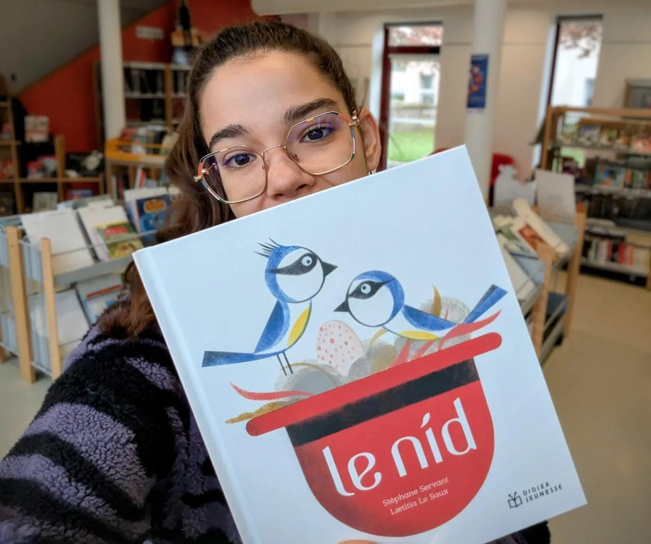 « Il s’intitule « Le Nid », écrit par Stéphane Servant et illustré par Laëtitia Le Saux, aux éditions Didier Jeunesse. C’est un album court, très visuel, qui raconte l’attente puis l’arrivée d’un enfant à travers une métaphore simple et poétique. Un chapeau devient un nid, les saisons passent, deux oiseaux s’installent, et un tout-petit naît. Le livre est délicat et sensible, ce qui permet d’apprécier les bienfaits de la lecture dès le plus jeune âge. »