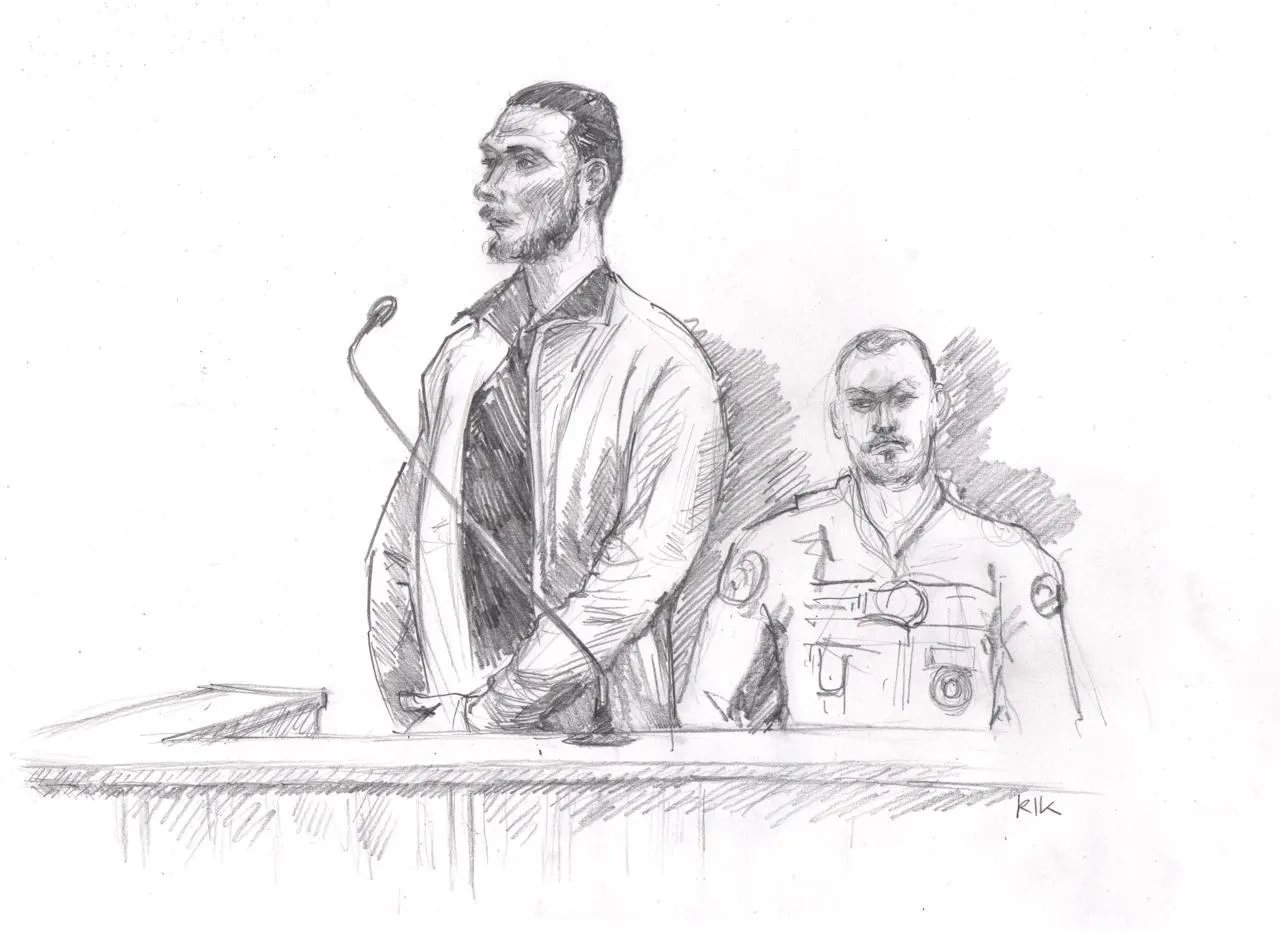 photo  dans le box des accusés, stanislas reinard, 29 ans, est jugé pour violences volontaires ayant entraîné la mort du nourrisson, fils de sa compagne.  ©  illustration amandine ricart 1