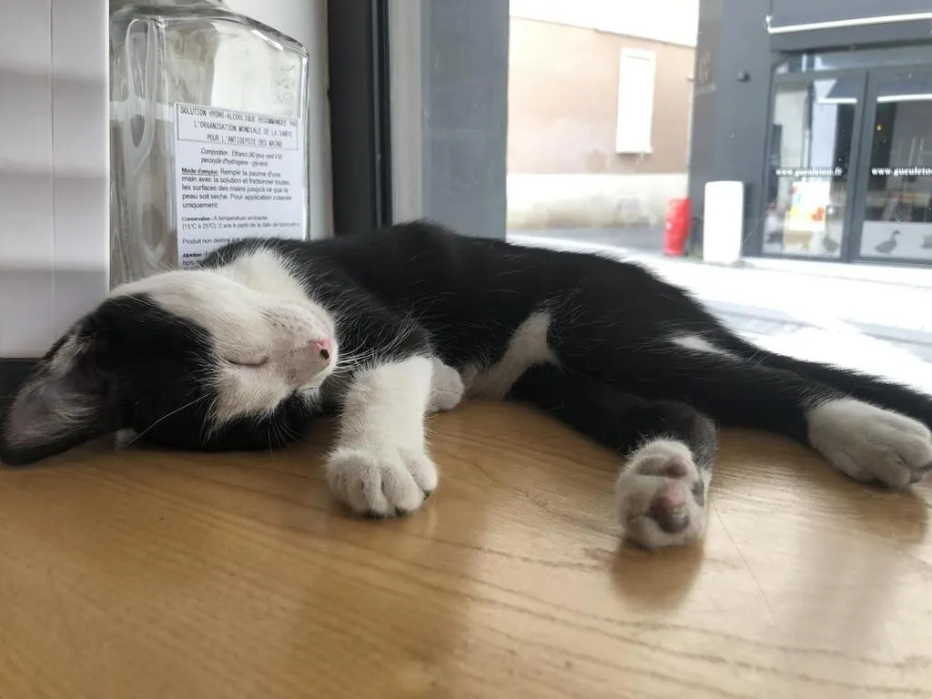 Cela fait deux semaines que neuf chats ont élu domicile dans ce bar, rue de la Roë, dans le centre-ville. Depuis son ouverture, les clients se succèdent pour s’offrir un moment de tendresse avec les petits félins.