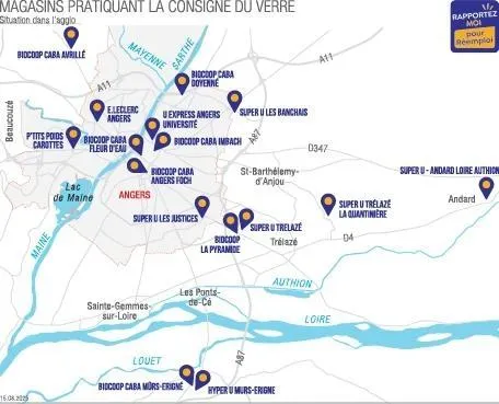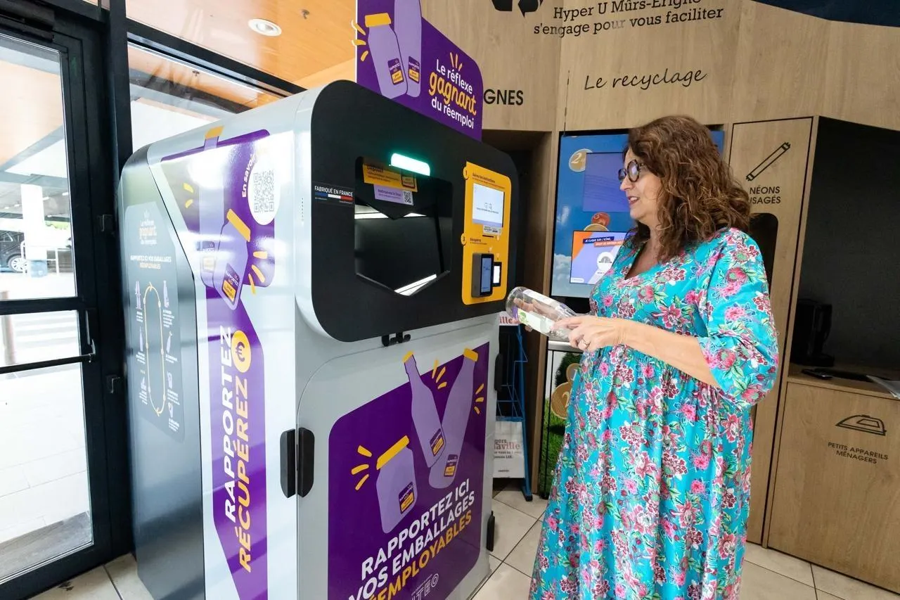 Depuis début juillet, plusieurs enseignes de l’agglomération d’Angers ont adopté une boîte à consignes de verre. À l’hyper U de Mûrs-Érigné (Maine-et-Loire), les premiers contenants consignés ont été mis en rayon, des produits liquides pour le moment.