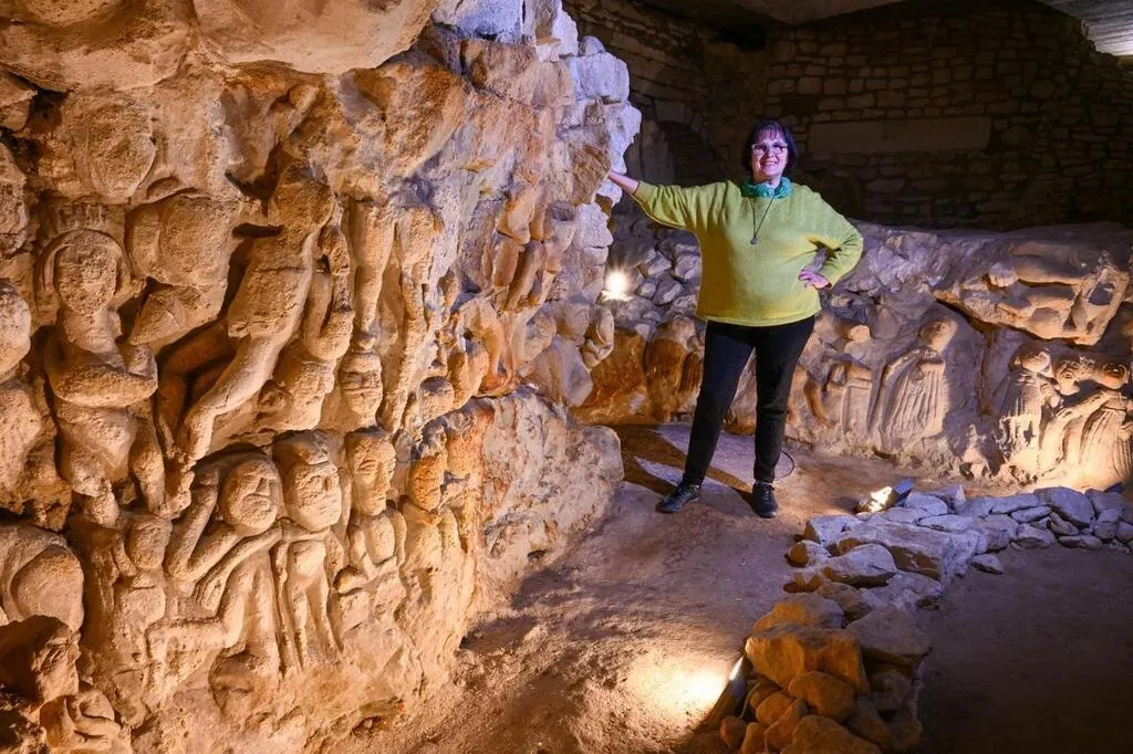 La cave aux sculptures de Dénezé-sous-Doué, est un endroit est unique en Europe. Elle regroupe plus de 200 sculptures remontant aux Guerres de religion. Eliane Lefort, présidente de l’association locale de sauvegarde du patrimoine, est fascinée par l’endroit. © Franck Dubray / Ouest France